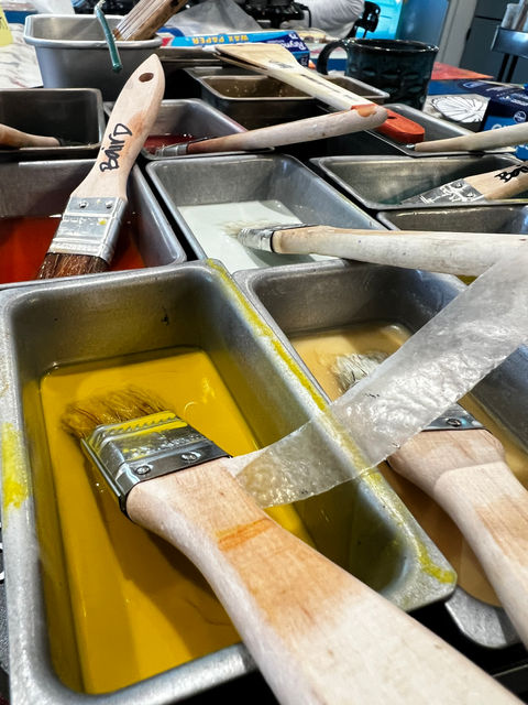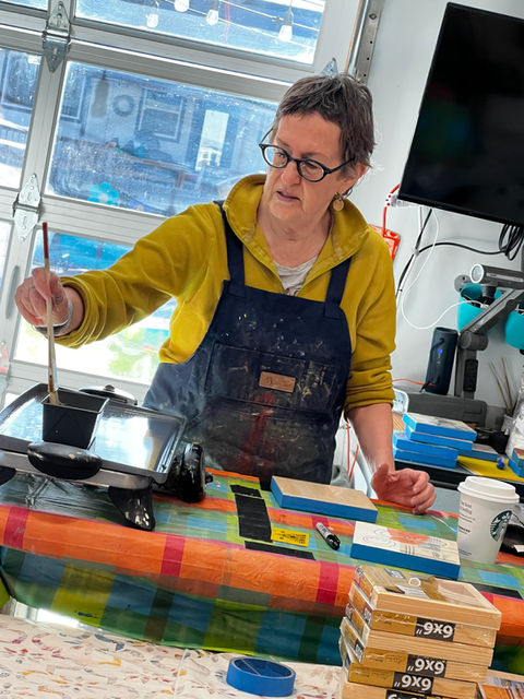 What would happen if you spent an entire day print making? Block printing, gelli printing, collagraphy, mini mono printing, encaustic printing, and a whole host of gadget printing (think food, bottle bottoms, found objects, leaves and more). And then spent a second day working with those prints under encaustic paint? You’d have a regular monothon and that’s what we will be doing at Outside the Box Studio. Come with us as we explore all sorts of monotype printing, and then combine them with encaustic painting. Two days of wild fun, no experience in printmaking or encaustic necessary. You’ll leave with a wide variety of printmaking you can do on your own without a press, and a delicious taste of encaustic painting.